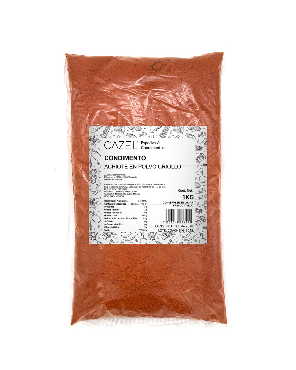 "Añada un toque de sabor y color vibrante a tus platillos con nuestro Achiote en Polvo Oaxaqueño de 1KG. Obtenga un 100% de autenticidad y calidad con cada cucharada de este ingrediente esencial en la cocina oaxaqueña. Experimente la verdadera cocina mexicana con nuestro producto hecho de achiote de la mejor calidad."
