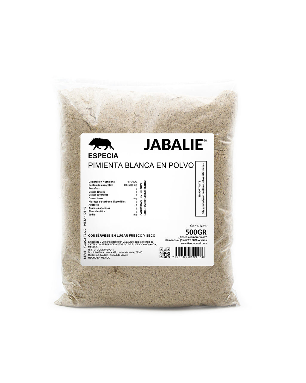 JABALIE® Especia Pimienta Blanca En Polvo 500 gr